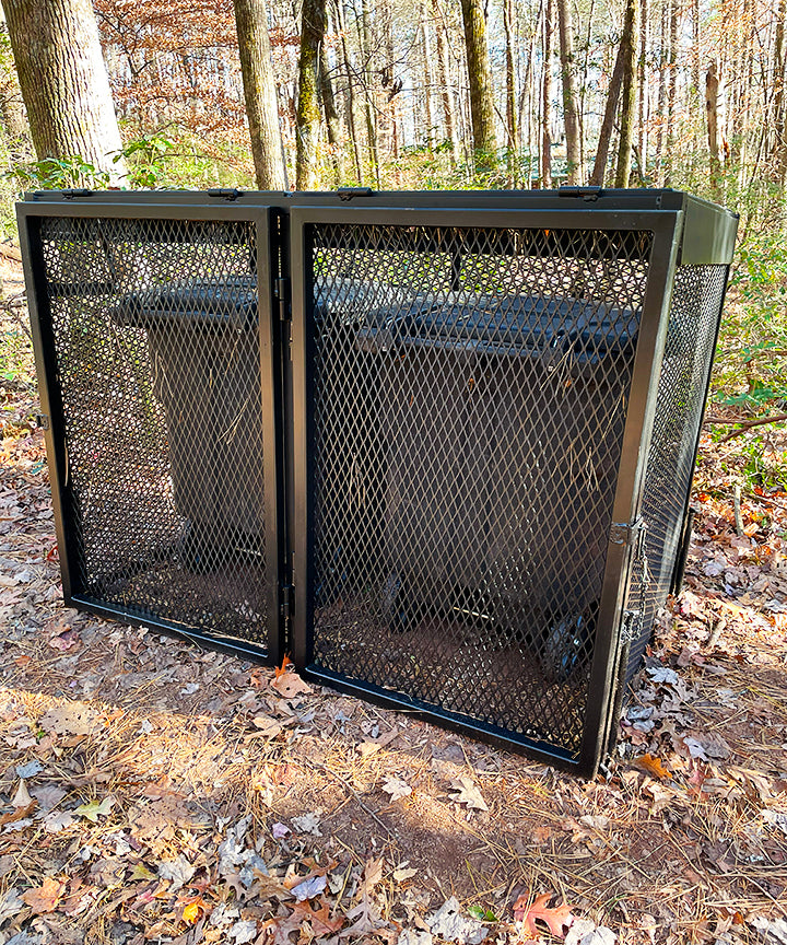 We were having trouble with bears getting into our trash cans and we were constantly having to clean up the mess. We purchased trash cans, but they didn't work because the bear tore through the front of the can. Then we contacted Frank and he suggested the BearScat Trash Bin Lockers. I really like the top with hinges. It makes it so easy to put the trash in. Now everything is great and we couldn't be happier!